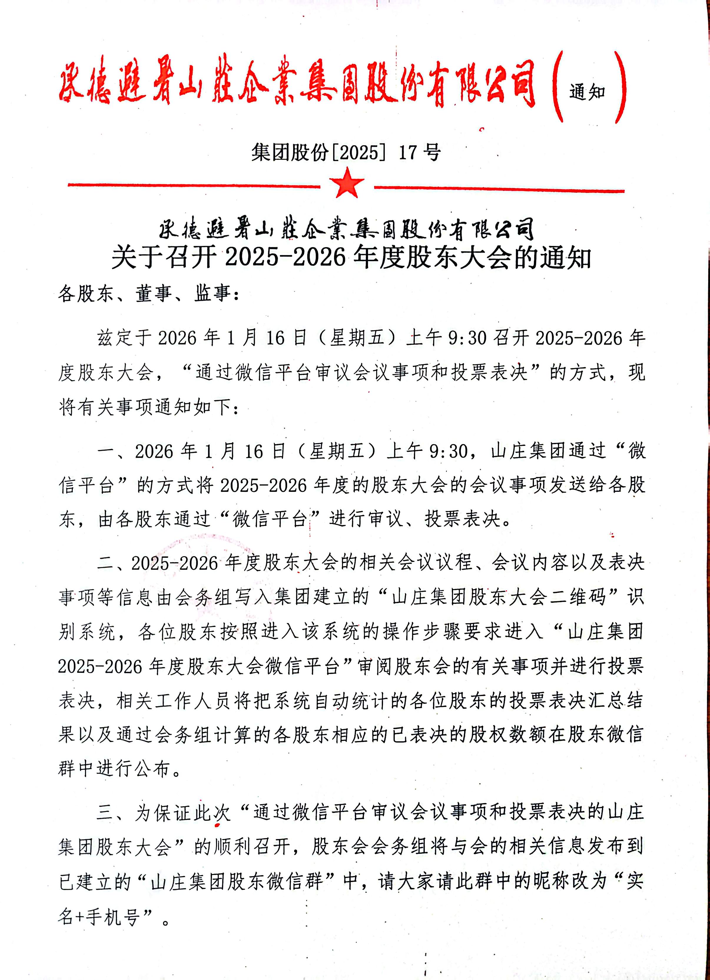 关于召开和记娱乐集团2025-2026股东大会的通知